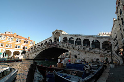里亚托桥(Rialto)是威尼斯最著名的桥,用白色大理石在1592年建成,桥上有建有很多店铺,销售各种纪念品和当地特产。